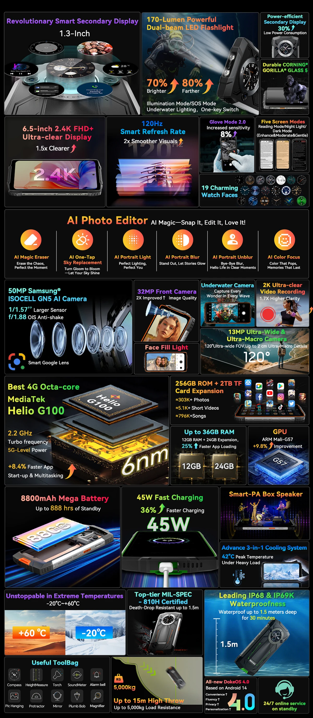 IP68/IP69K: Yes Charging Power: 45W Touch Screen: Yes Screen Refresh Rate: 120 Hz Battery Capacity Range: 7500+ mAh NFC: Yes Rear Camera Pixel: ≈ 64 MP Front Camera Pixel: 32MP Battery Capacity(mAh): 8800 Screen Material: IPS CPU Model: MTK Display Resolution: 2388×1080 Display Size: 6.49 Operation System: Android Item Condition: New Design: Flip Brand Name: BLACKVIEW Touch Screen: Yes WIFI: Yes Design: Flip Origin: Mainland China