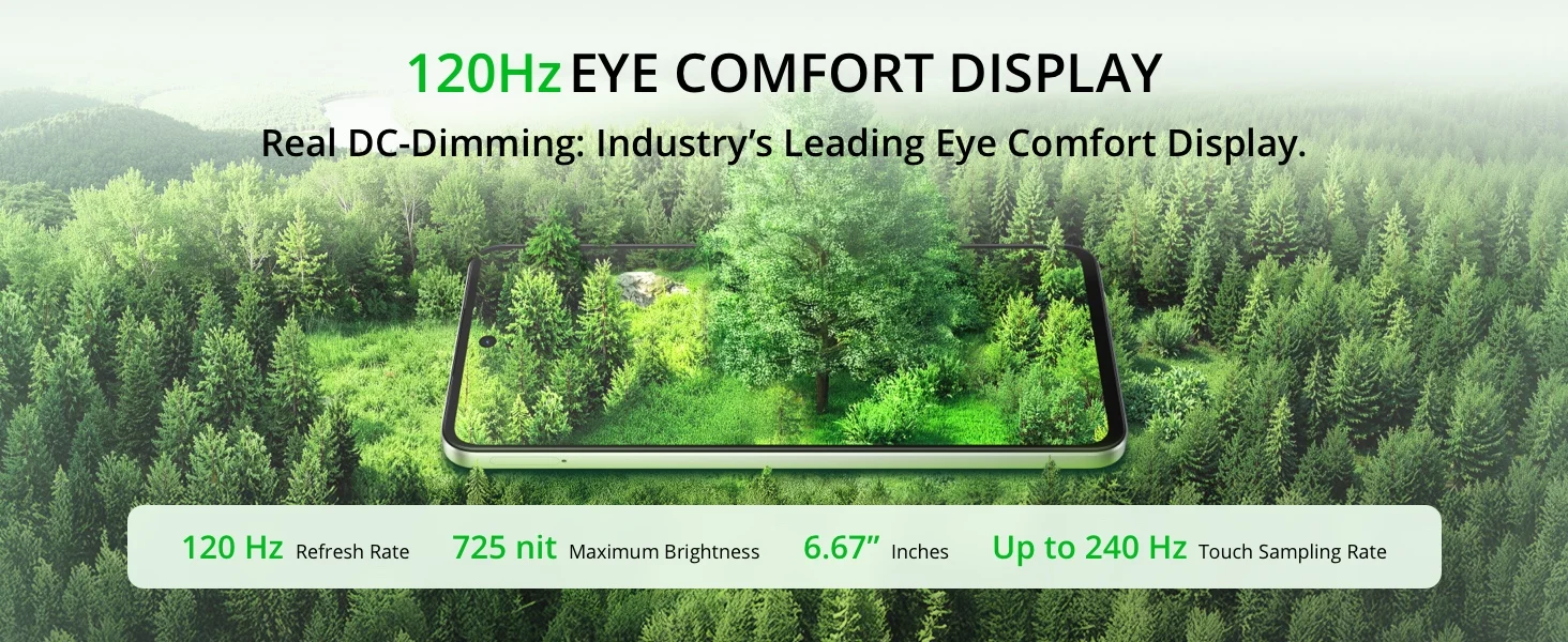 Display——————6.67 inches 120Hz Eye Comfort Display, HD+(1604×720) Resolution, 264 PPI