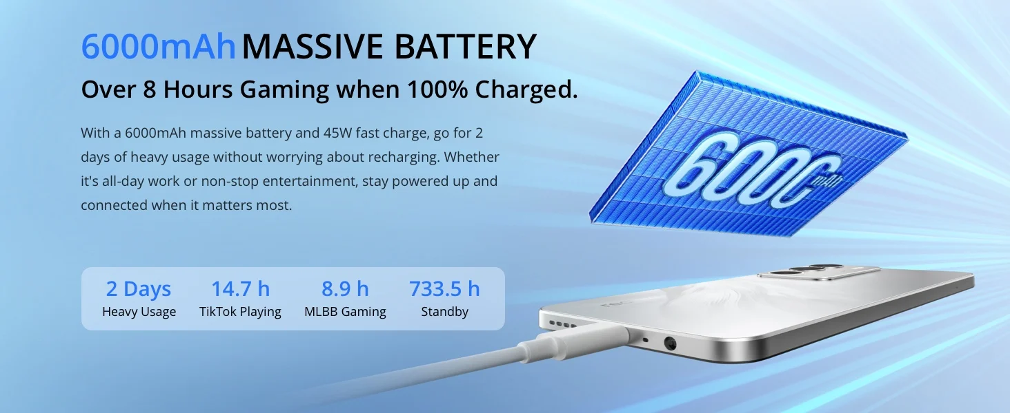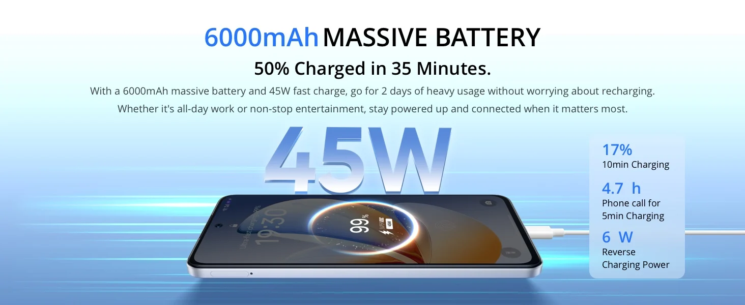 Charging & Battery—6000mAh(rated value)/5830mAh(Typical), 45W Charger