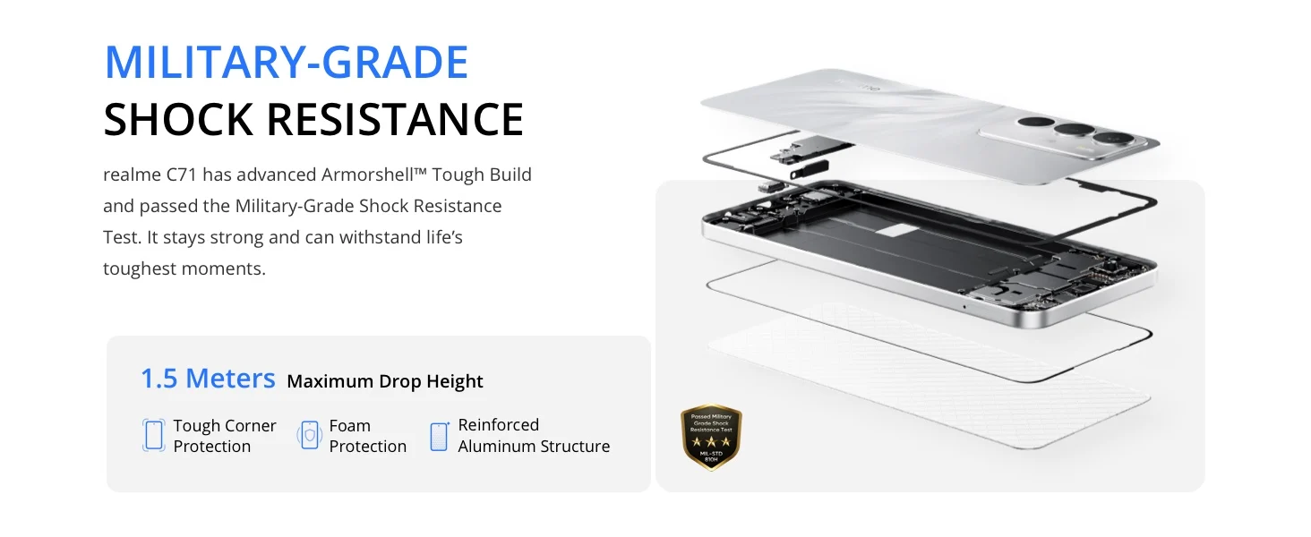 The Original package DOES NOT include the Charger. Model ——————–realme C71 Processor—————UNISOC T7250, Octa-Core Chipset Operating System—-Android 15 Display——————6.67 inches 120Hz Eye Comfort Display, HD+(1604×720) Resolution, 264 PPI Charging & Battery—6000mAh(rated value)/5830mAh(Typical), 45W Charger Rear Camera ———50MP Selfie camera———5MP Others——————-IP54, Bluetooth 5.2, Side Fingerprint, Face unlock Network: Dual SIM Frequency Bands: 2G GSM: 850/900/1800/1900MHz 3G WCDMA: 1/5/8…