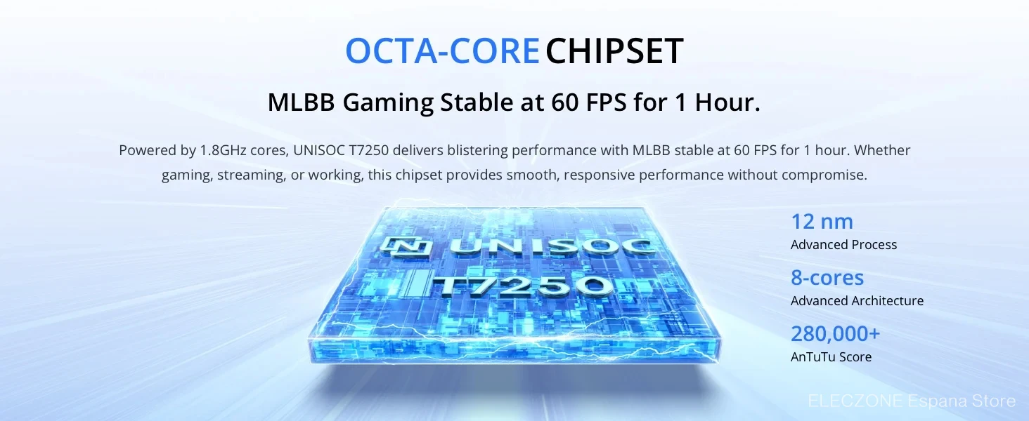 Processor—————UNISOC T7250, Octa-Core Chipset